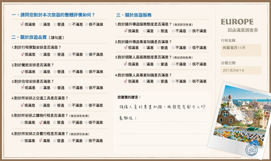 領隊人員的專業知識,服務態度都令人印象極佳!