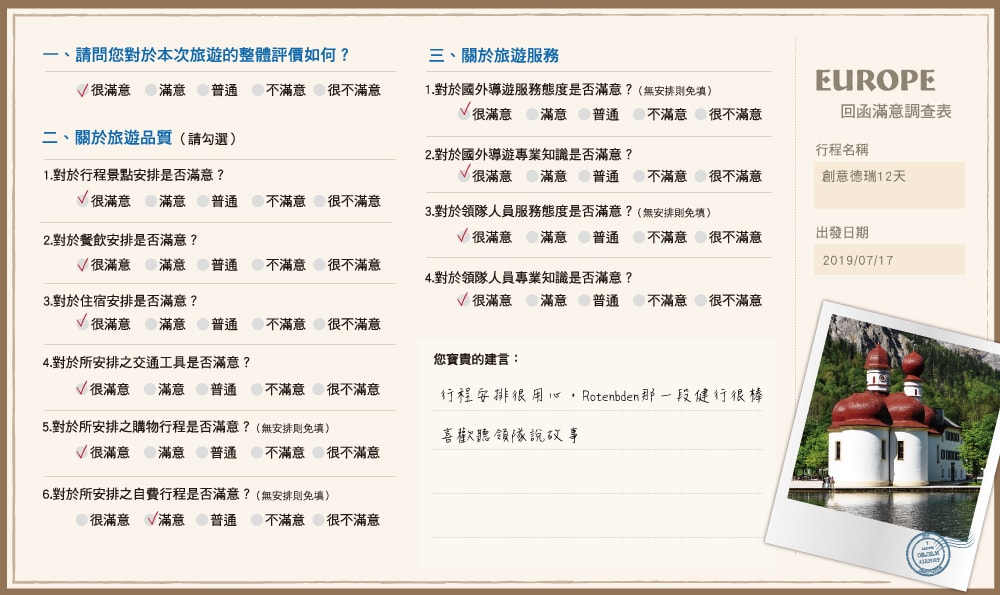 行程安排很用心,Rotenbden那一段健行很棒,喜歡聽領隊說故事...