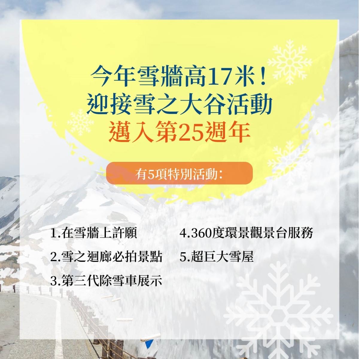 2019年立山黑部從4月15日起正式開山,一路到6月22日為止旅客都能前往朝聖,每年立山雪封時間長達四個多月,立山黑部觀光鐵道利用除雪車鏟出車道,因此在道路兩旁留下高聳雪牆,榮獲米其林觀光指南三顆星的立山黑部阿爾卑斯山脈路線,堪稱是旅人心目中的此生必遊!