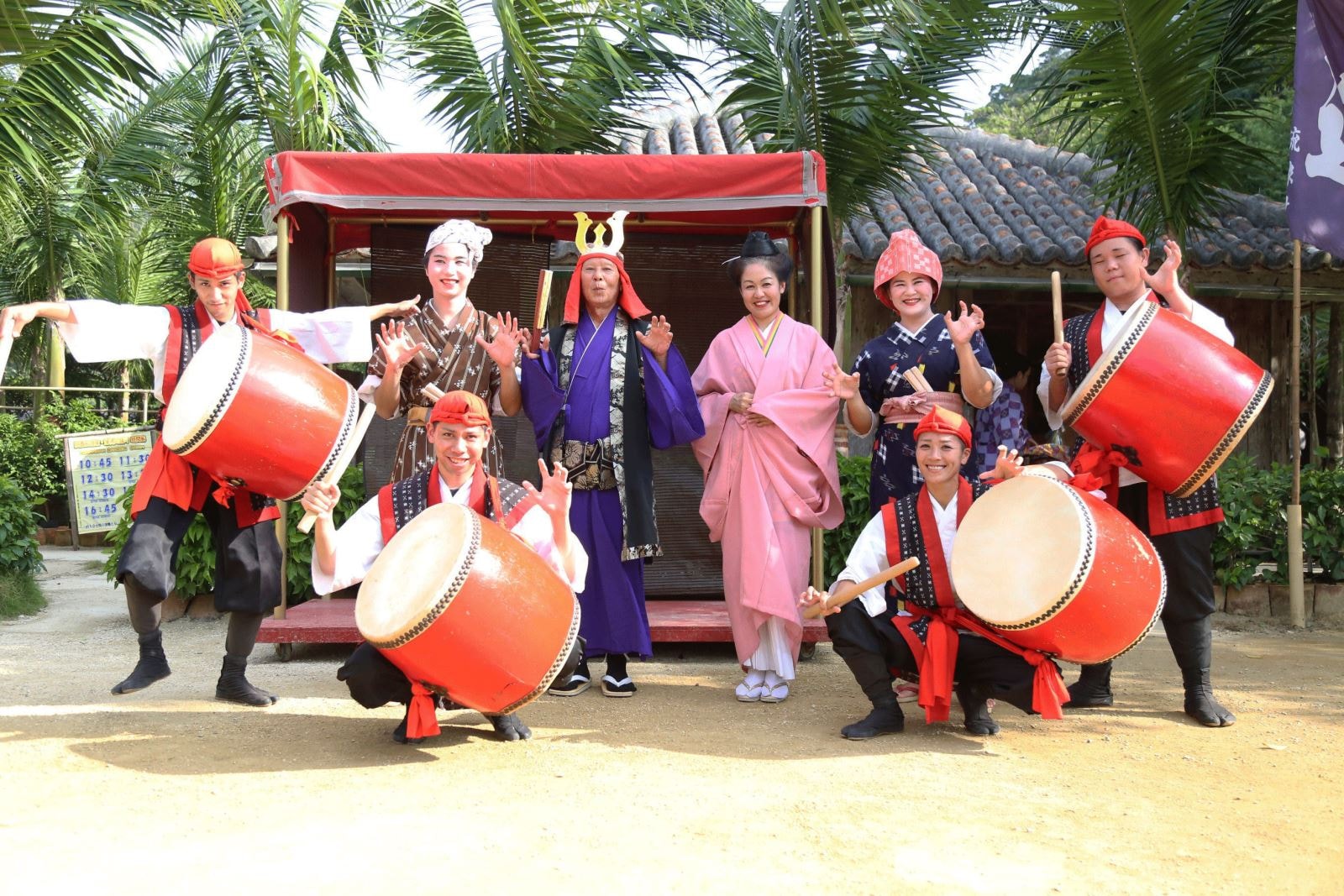在園區內盡見沖繩獨特的紅瓦屋頂的民家景觀,可品嘗沖繩開口笑,也可拍攝琉球服飾的紀念照片。此外,舞台上經常上演民謠、傳統歌舞表演。