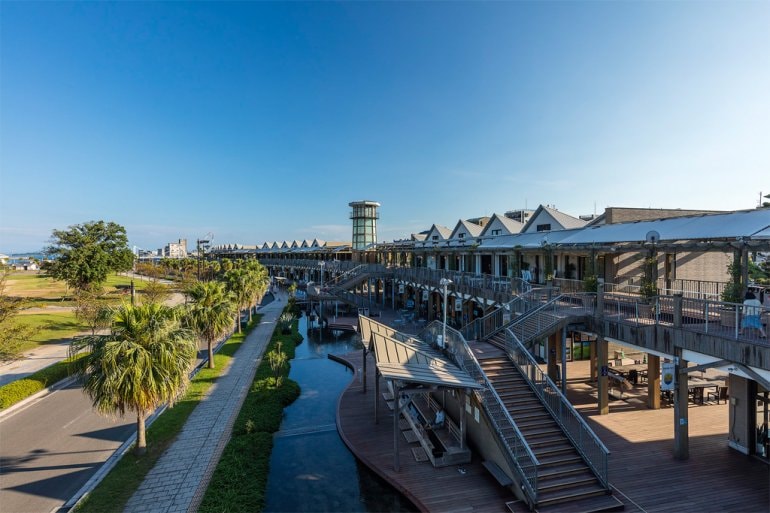 海豚灣複合式休閒商業區,可以眺望到充滿鹿兒島氣息的錦江灣和櫻島,是一個充分表現出南國氛圍的綜合商業設施。