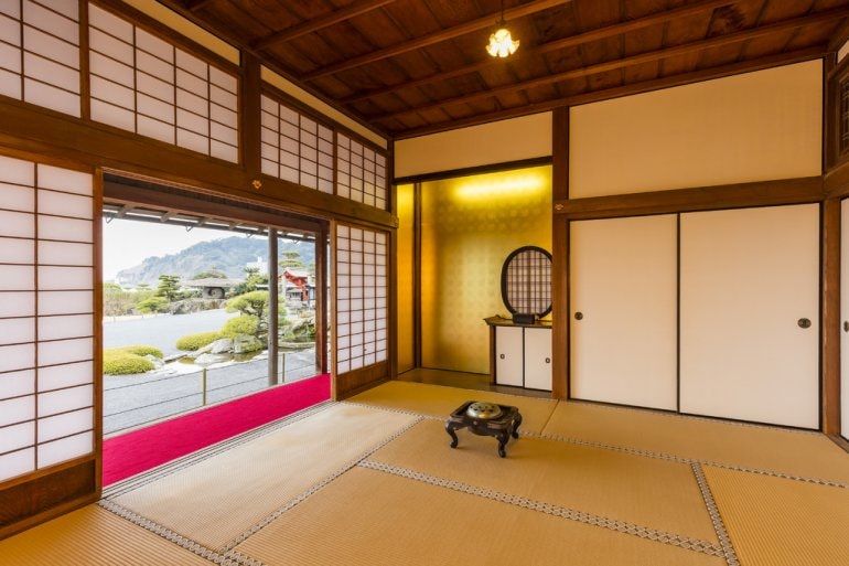 可以遠眺錦江灣、櫻島,春天可以賞櫻,秋天則可以賞菊花,是一座占地面積約5萬平方米的借景庭園,壯觀的美麗景色讓人留連忘返。