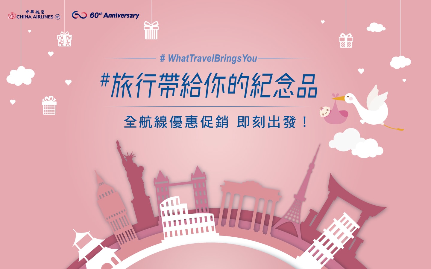 華航60周年慶再一促銷機票回饋:旅行帶給你的紀念品促銷~邀您飛一波,一起創造人生的感動與驚喜!